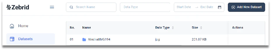 - From the dashboard, click [DATASETS] in the left menu, then click the button [Add new Dataset]. You will arrive on the dataset entry page where you can describe your data.